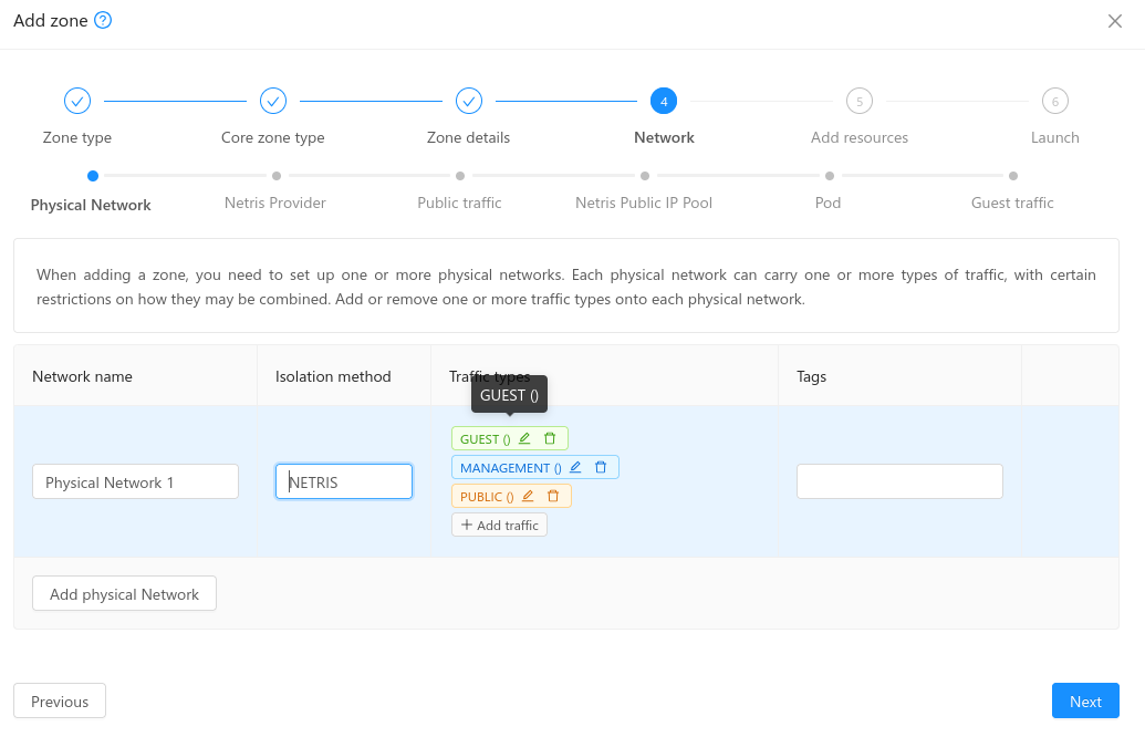 - When the NETRIS isolation method is selected, new steps are added to the zone creation wizard: